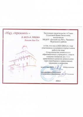 Выражаем благодарность воспитателю Сельцовой Ирине Евгеньевне за участие в конкурсе "Пчелка-2024"! Поздравляем и желаем дальнейших творческих и педагогических успехов!!!